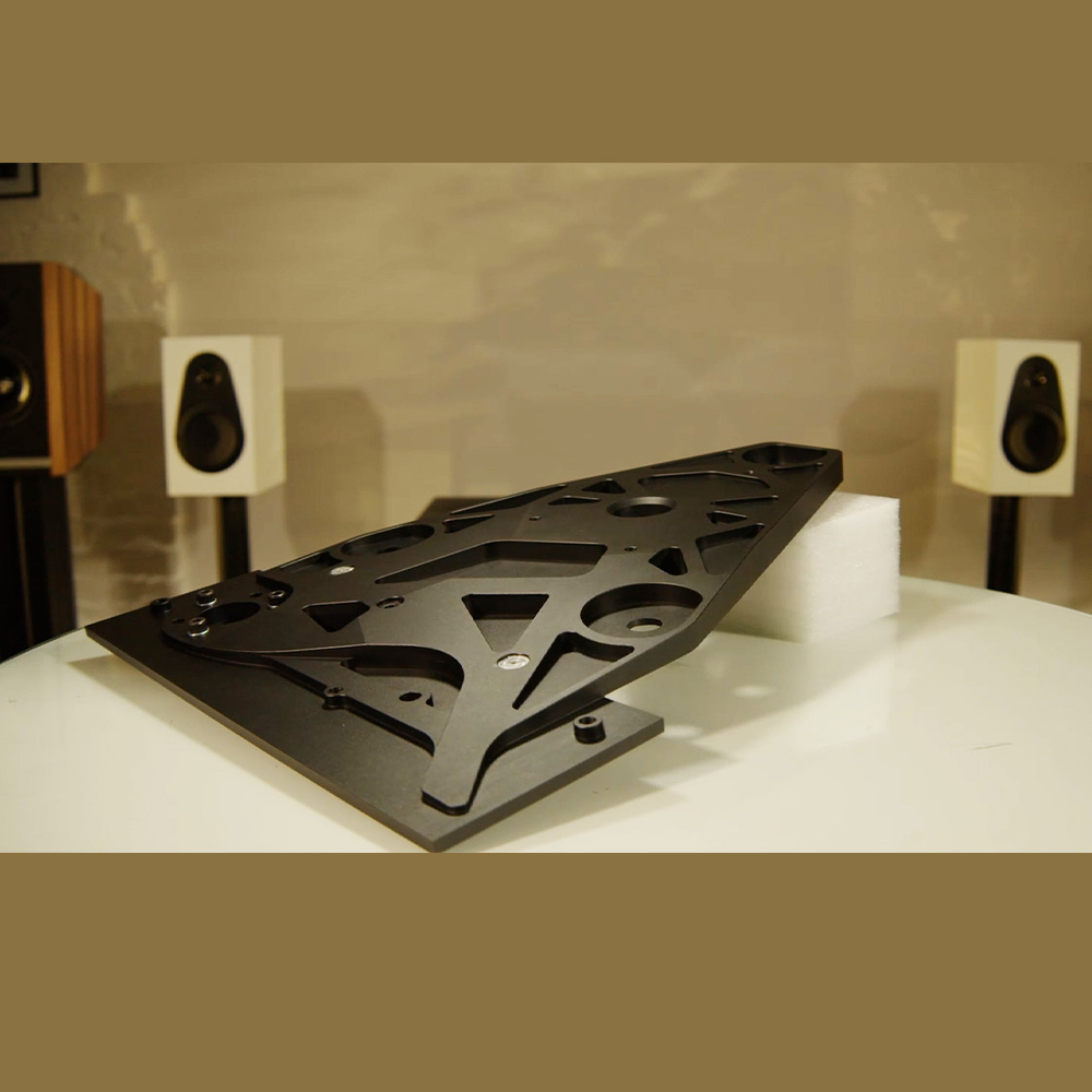 An intricate bracing structure machined into the underside of Keel SE – designed using a mixture of manual and computer-aided optimisations – has helped Linn achieve their number one goal of increasing sub-chassis stiffness as much as possible. This significant 300% increase versus previous designs means that any vibrations travelling through Keel SE have their frequencies forced higher, and their energy substantially lowered.