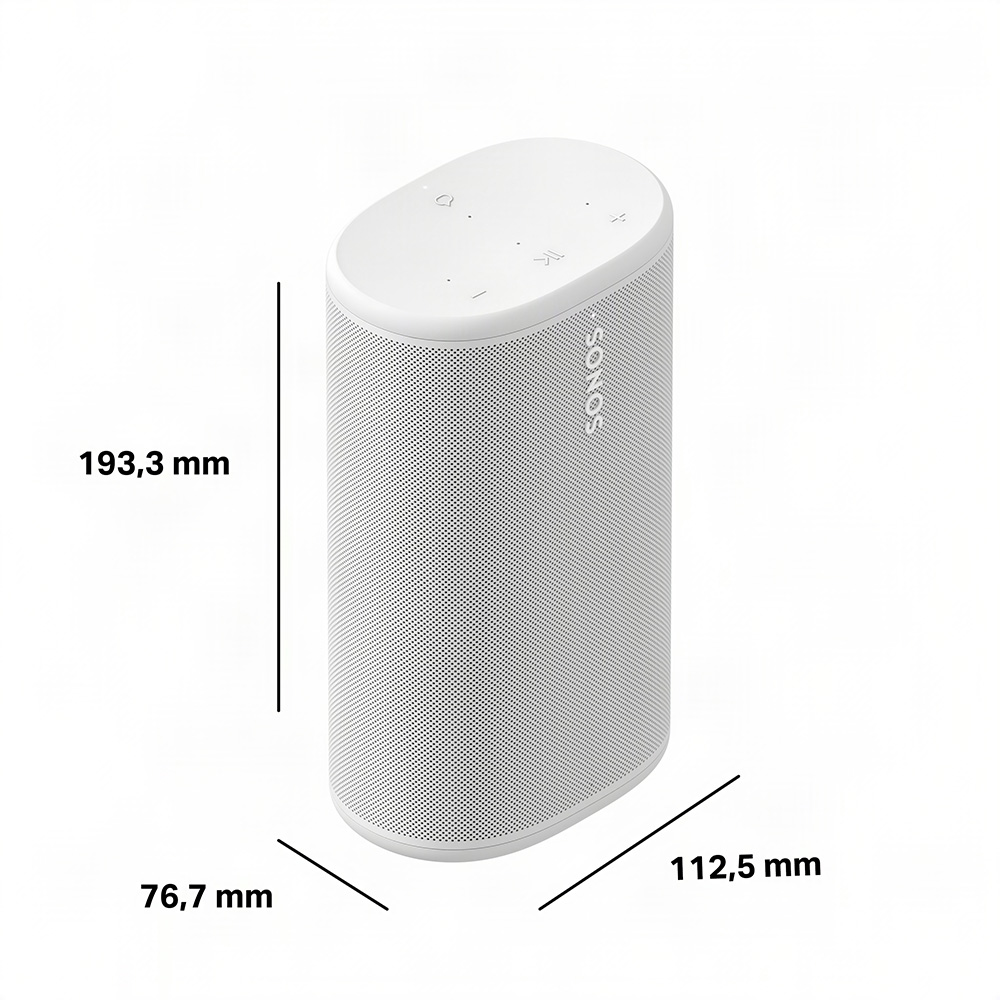 - Controls: Use the button controls to play, pause, skip, replay, adjust the volume, mute your voice assistant, and group or ungroup Sonos products.