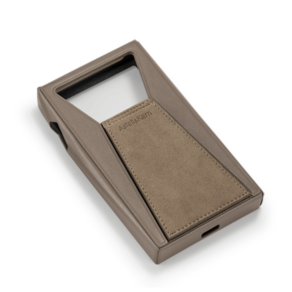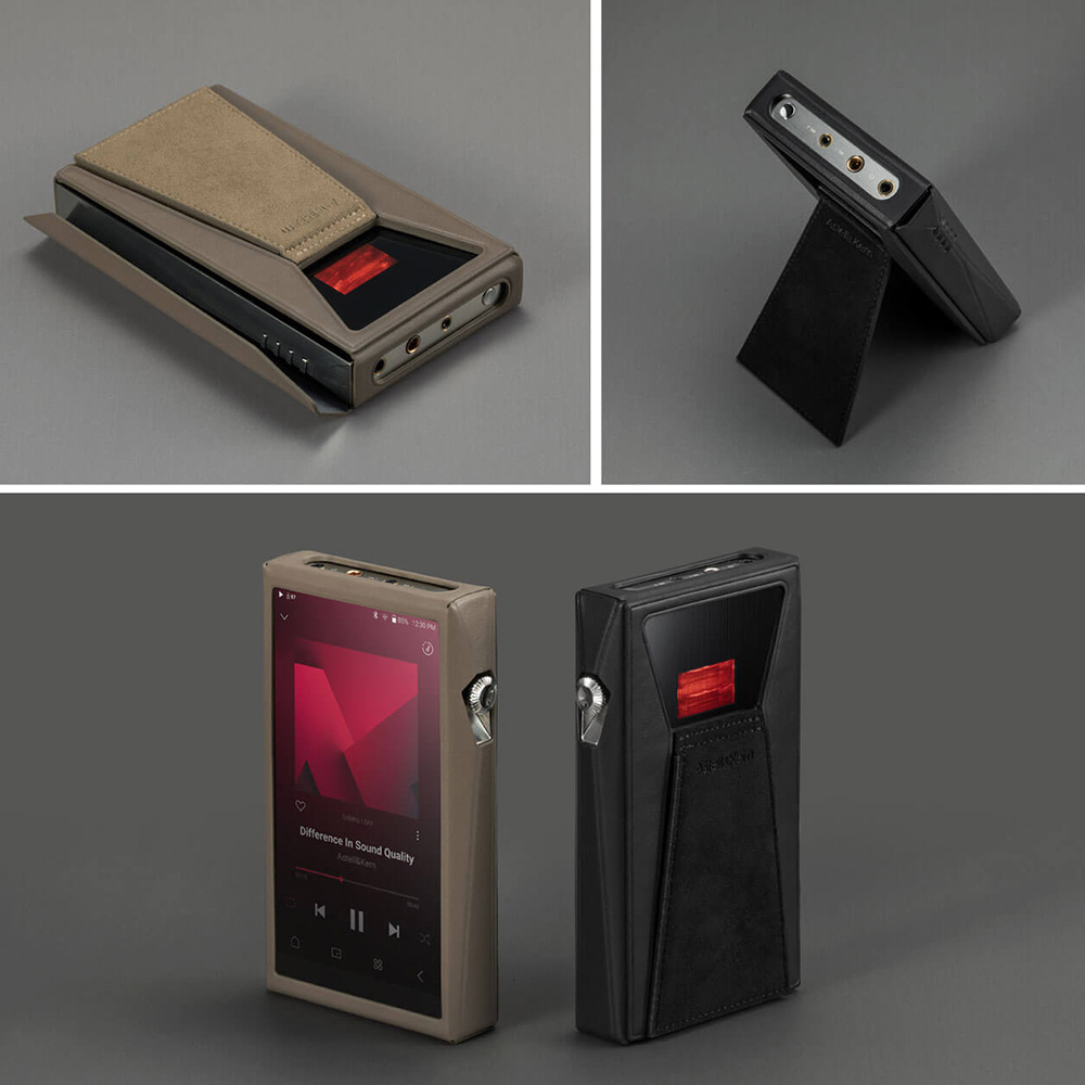 The case is available in two colors: Black and Taupe. It is the first Astell & Kern leather case to feature a built-in stand, enhancing usability. The case wraps around the entire player, providing excellent protection and a superior grip with a perfect fit.