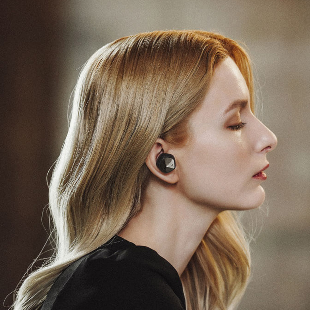 Designed to fit snugly in the ear, the earbuds' shape is transformed from a pentagon to a circle, just as the sound flowing through them transforms when it is gathered, refined and then reproduced with clarity.