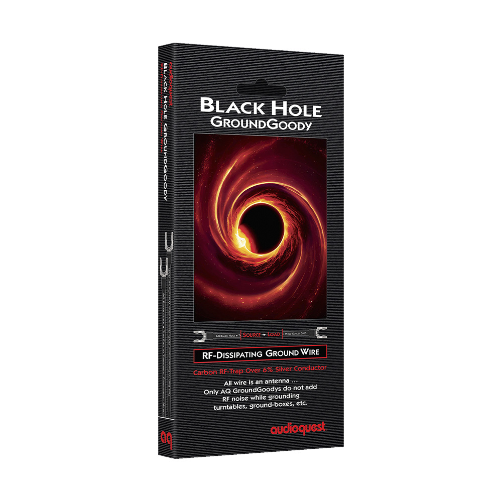 Unlike other ground wires that act as radio-frequency antennas, AudioQuest Black Hole GroundGoody prevents hum while efficiently dissipating radio-frequency noise. AudioQuest Black Hole GroundGoody uses premium conductor materials — AudioQuest’s 6% Silver over Long-Grain Copper — that are controlled for direction and cold-welded to Direct-Silver Plated #10 size spade lugs. Further, AudioQuest Black Hole GroundGoody employs a Carbon RF-Trap comprising conductive PVC to aid RF-noise dissipation.