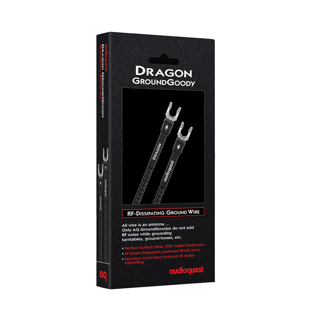 The Audioquest Dragon GroundGoody Ground Cable features Solid Perfect-Surface Silver (PSS) Conductors, significantly enhancing its ability to efficiently dissipate RF noise.