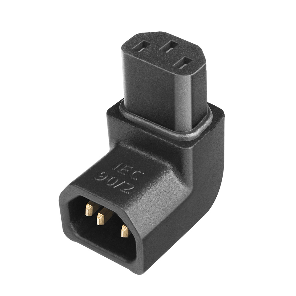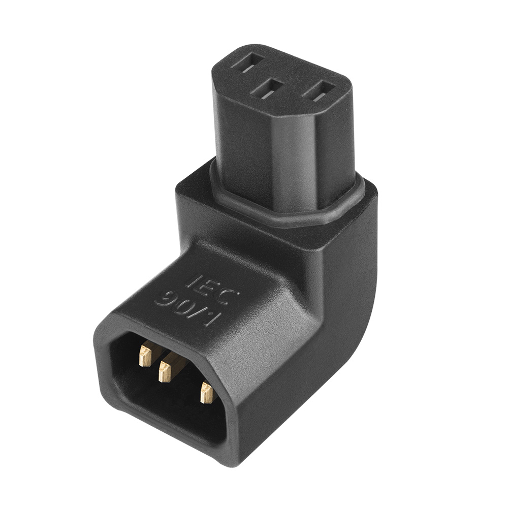 - IEC 90/1 bends toward the ground pin. Perfect for those tight installations that require strain relief with no sacrifice in performance on your high-performance power cables.