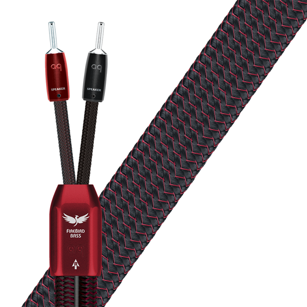 When possible, running separate cables to the treble and bass “halves” of a speaker significantly reduces distortion. Bi-Wiring keeps the large magnetic fields associated with bass energy out of the treble cable, allowing the delicate upper frequencies to travel a less magnetically disturbed path, like taking the waves out of the water when you swim. AudioQuest’s RF/ND-Tech (patented RF-Canceling Ground-Noise Dissipation) attracts RF energy away from the amplifier’s output. When properly implemented, Bi-Wiring has always been a cost-effective way to get better performance for the same or less money. With RF/ND-Tech, the advantage of Bi-Wiring is much more dramatic. Because RF/ND-Tech is so effective, BASS model cables are only for 10KHz and below; do not use a BASS cable full-range or on treble. FireBird BASS cable is ideal with FireBird ZERO. A Bi-Wire COMBO with BASS and ZERO cables joined together at the amplifier is usually most convenient. When Tri-Wiring, use BASS cables on the Midrange and Bass inputs. Caution: Do not Bi-Wire with two ZERO cables. ZERO cables in-parallel can create a very high-frequency resonant peak (ringing), and resulting poor sound. Only use a ZERO plus a BASS cable (whether or not joined as a COMBO). Second best is a single ZERO with AQ Bi-Wire jumpers.