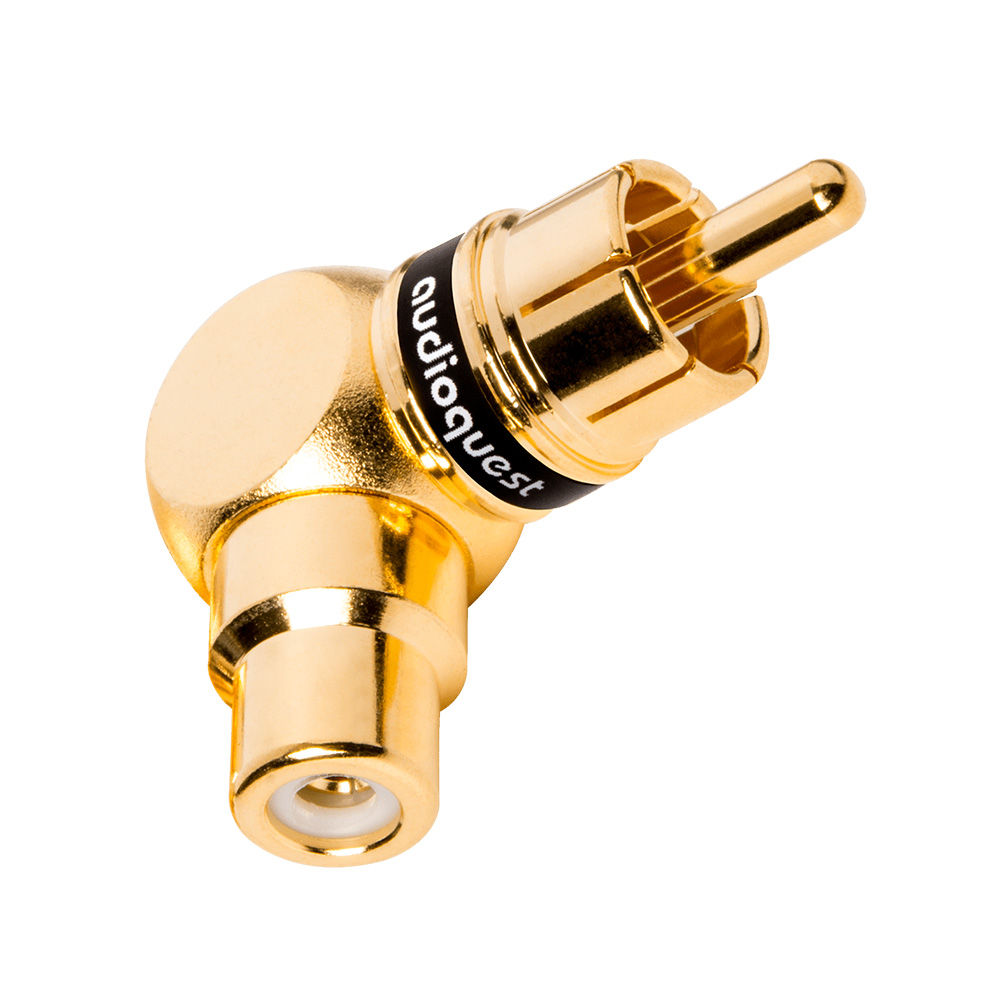 Female RCA to Right-Angle Male adaptor allows for more flexibility behind electronic products whose cable connections may otherwise be too stiff.