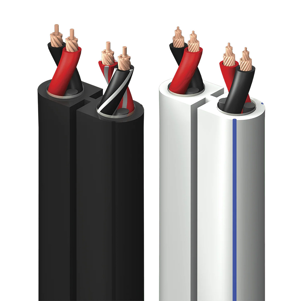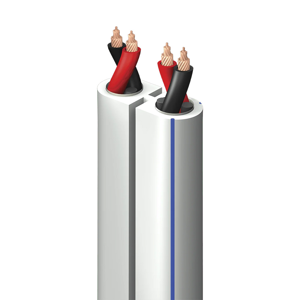 A typical speaker cable with parallel conductors has fairly high inductance, smearing energy across time, which results in sound that is dull and unfocused. In Rocket 11/22, the two conductors in each half of the cable are twisted around one another, providing lower inductance, greater clarity, and superior bass-to-treble frequency extension