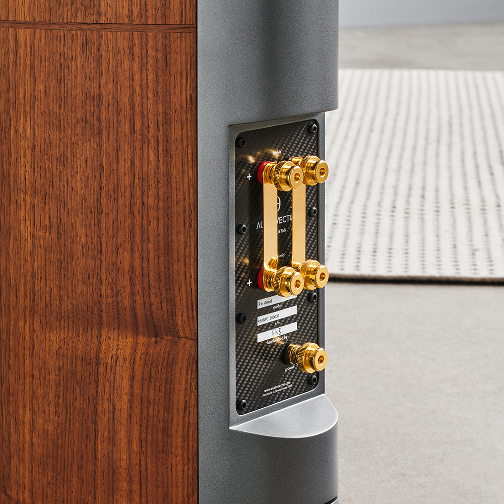 Audiovector Freedom is a new and revolutionary grounding technology, which addresses the movement induced distortion of and between the drive units in a loudspeaker. The currencies running between the chassis are being processed and dealt with through a new separate crossover, which routes the signal to the ground terminal of your wall socket or your grounded mains distributor. Contrary to conventional knowledge, these currencies cause coloration and distortion between the drive units. By balancing and filtering these through a dedicated separate filter and by offering the possibility of connecting the speakers to earth/ground, a clean, very accurate, much more realistic sound with low noise floor can be achieved. Exclusively on R 6 Arreté