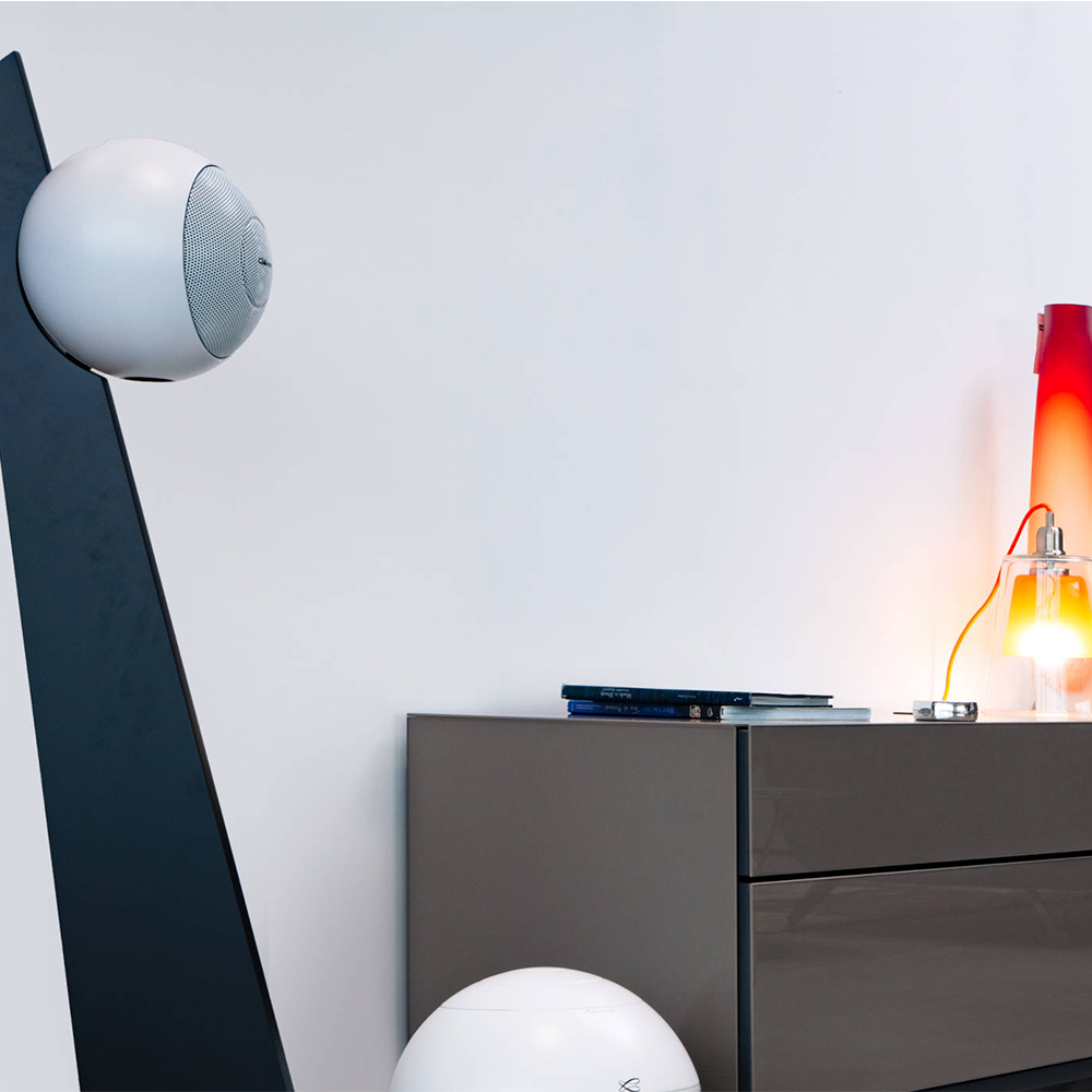 RIGA 2 on-stand is available in a matt black or oak finish. It is an ultra-compact satellite speaker equipped with a 17cm coaxial driver set in a sphere half the size of its predecessor, the Baltic. The BC 17 driver will fully satisfy the acoustic demands of music and film enthusiasts and will aesthetically delight listeners with its discretion and elegance. It is manufactured by Cabasse in its workshops in Brittany.