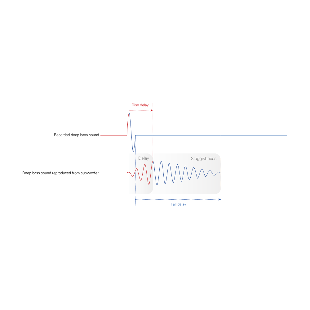 A low-pass filter (LPF) for music signals is one of the causes in delaying music signals to subwoofers, and plays an important role working as a treble blocker while allowing bass sounds to pass the LPF. Therefore, a slight delay in low-range signals will result. Furthermore, devices, such as AV amplifiers and subwoofers, use LPFs, and a delay in bass sounds will become significant when music signals pass through a number of LPFs. In order to solve this phenomenon, ECLIPSE’s subwoofers incorporate an LPF bypass function. In the case of reproducing subwoofer channel signals, including Blu-ray music signals, through the built-in LPF of an AV amplifier, a delay in bass sounds can be minimised letting the sounds bypass the LPF on the subwoofer side.