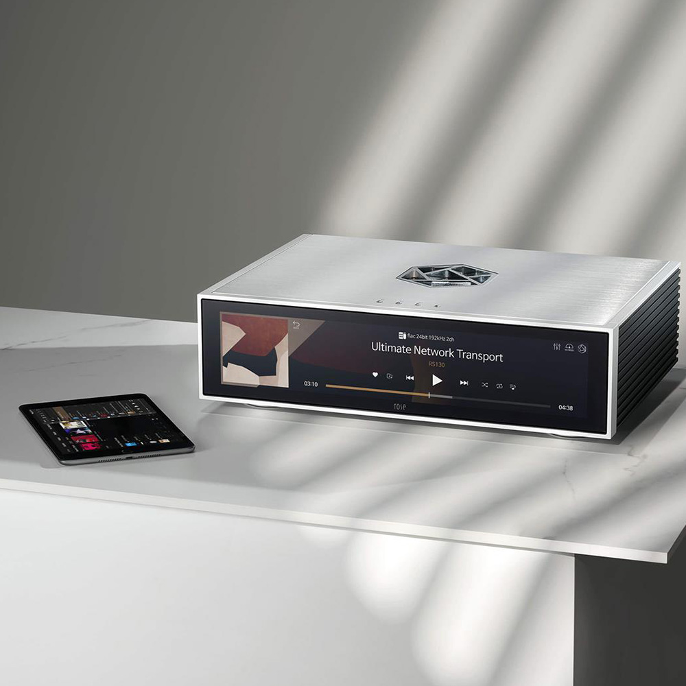 The RS130 is the ultimate network streaming transport. From its crystal-topped control buttons and intuitive touch-screen interface, through to its complex, performance-optimised inner workings; this is a flagship device suited to any audiophile looking for the best possible way to get a whole world of digital audio content to their DAC.