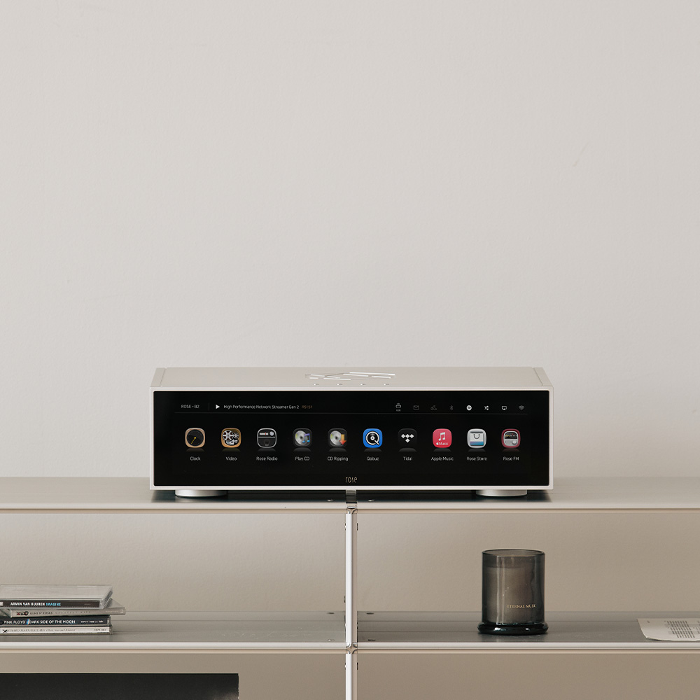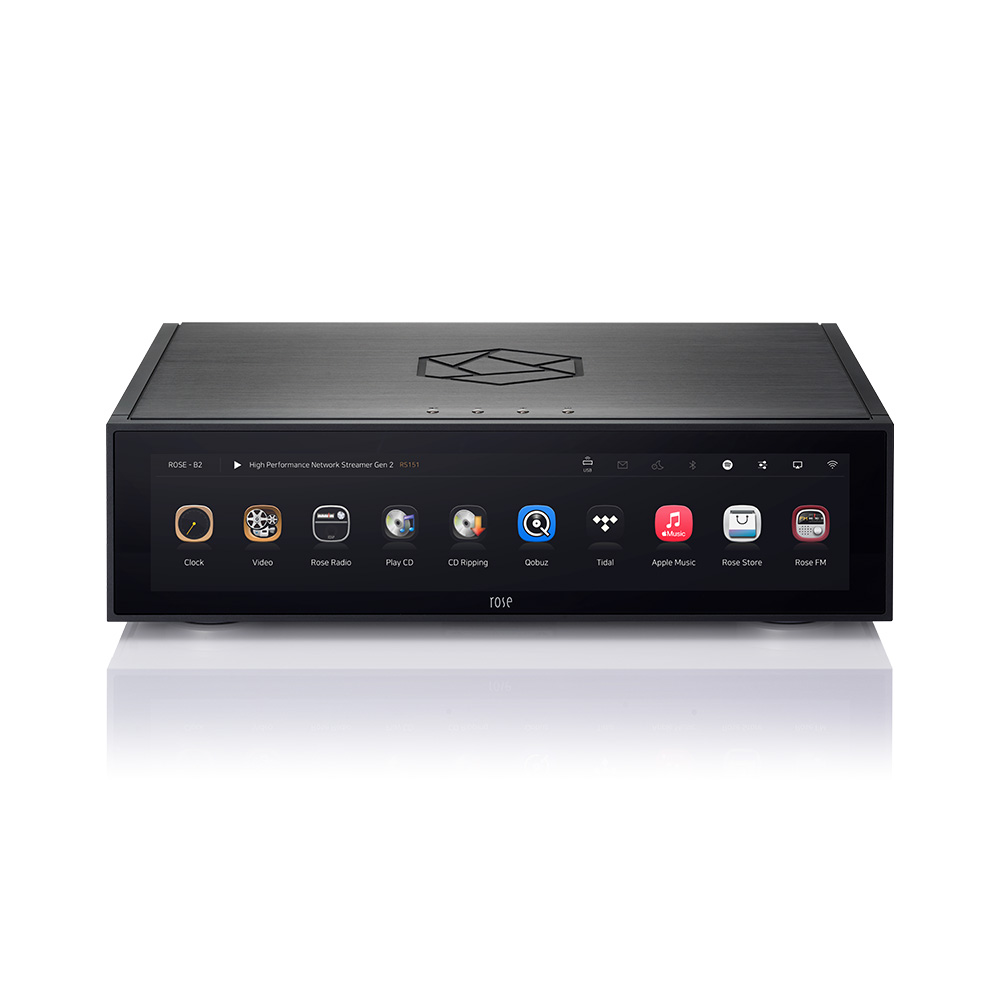 The RS151 is a reference-level network streamer, using next-generation technologies. Boasting a full-HD touch screen within a sturdy aluminium construction, it serves as an ideal streamer for your music, and as a high-quality DAC for any other digital sources you may have. The advanced Rose OS operating system makes the RS151 an easy partner for any high-quality audio system.
