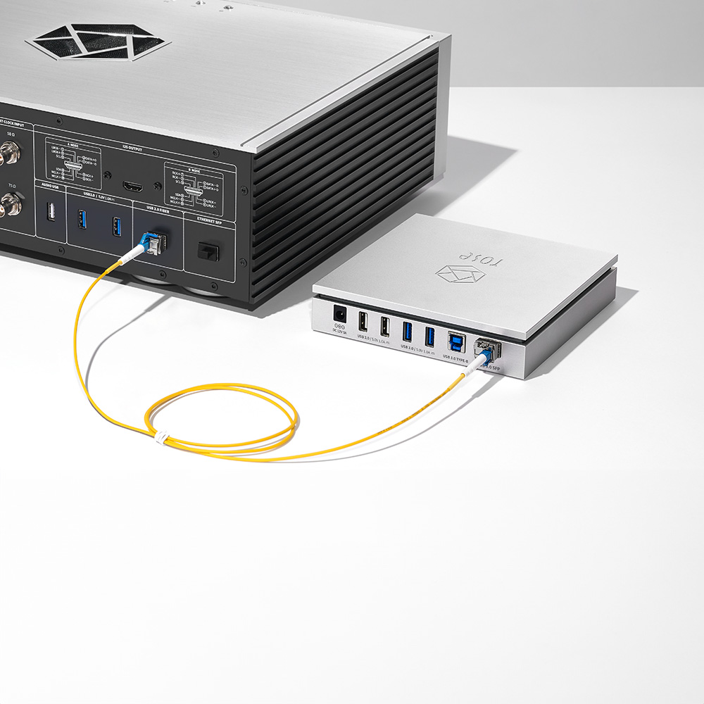 The RSA720 uses optical USB technology to fundamentally block electrical noise from external storage devices reaching your playback source. Thanks to its SFP optical transceiver, you can guarantee the output from your stored music library can get to your player in its original quality.