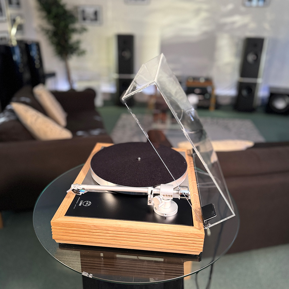 It includes Linn’s latest sandwich-construction aluminium sub-chassis, patented single point bearing, and internal low noise power supply. Linn’s Majik tonearm and Adikt moving magnet cartridge complete the deck.