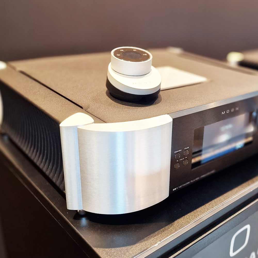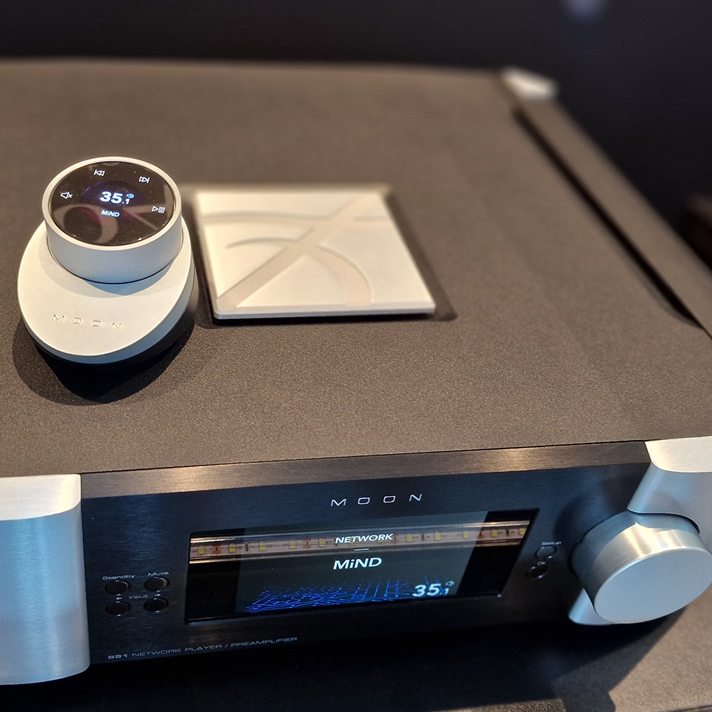 The 891 incorporates a high-performance moving-magnet and moving-coil phono preamplifier, which may be configured in realtime owing to its stunning interface, a brilliant 5” colour OLED screen. In addition to displaying the extensive setup menu, it showcases cover art and track information while streaming, as well as volume and input selection, and even reports on the status of other MOONLink devices. Operating the preamp, the BRM-1 delivers the same feel of controlling the refined 891 volume knob from virtually anywhere.