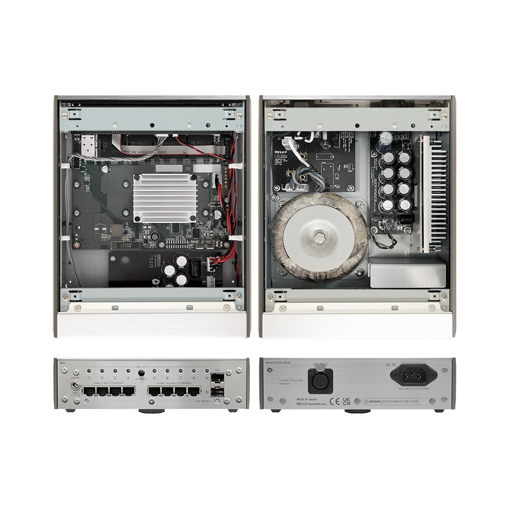The S10’s head unit is based on a heavily upgraded S100 network switch, and benefits from a greatly improved power management section. The head unit’s casework has also been significantly improved with better aluminium used for the casework to improve rigidity and increase isolation for the signal-carrying electronics. A rigid-steel screened chassis offers further mechanical stability.