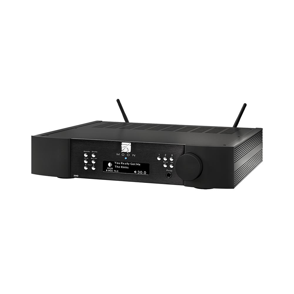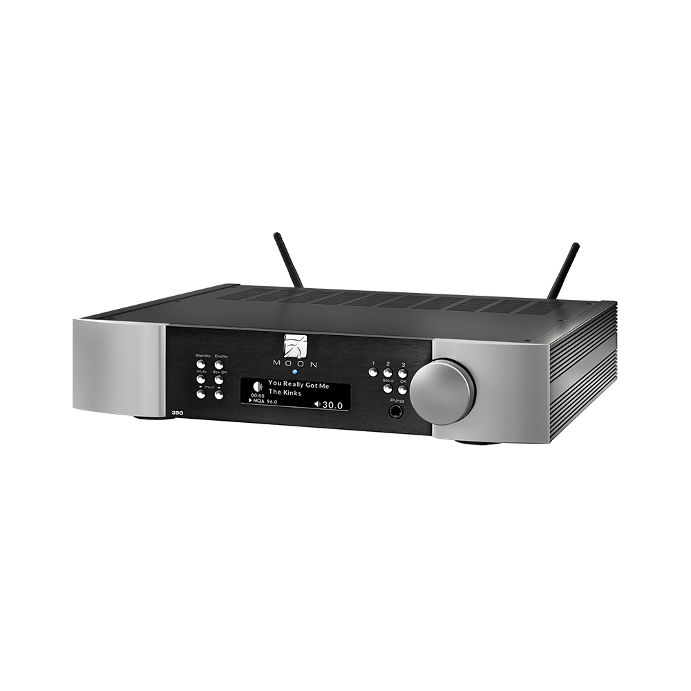 The MOON 390 Network Player / Preamplifier offers a complete high-end listening solution. Featuring a DAC, preamplifier, headphone amplifier, phono stage and network streaming capability, it is a truly flexible music system. Simply connect it to a power amplifier or active loudspeakers to hear an exceptional audio performance.