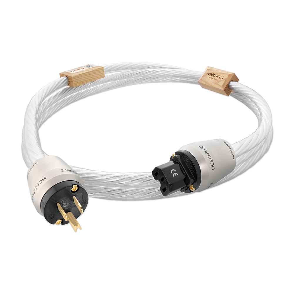 The Odin 2 Power Cable is constructed with seven silver-plated, close tolerance, 14 AWG 99.999999% oxygen free copper conductors. Nordost’s patented Dual Mono-Filament technology is then used so that the twisted pair filaments create a virtual air dielectric between the extruded FEP insulation and each individual conductor. These intricately wound and separately insulated conductors are aligned with superb geometrical accuracy and consistency, offering perfect conditions for mechanical resonances. To allow for a faster rise time in the 50/60 Hz cycle and negate any EMI or RFI influences, each conductor is then protected by a layer of silver-plated lapped ribbon shielding. Nordost’s TSC technology continues in the construction of its purpose-built, 100% shielded, HOLO:PLUG® connector, which is provided on both the IEC and plug ends.