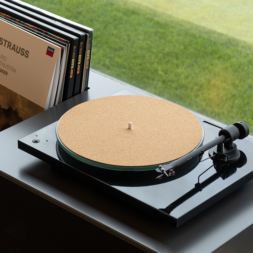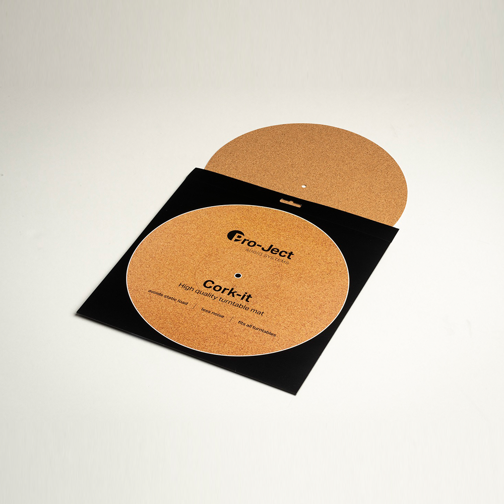Turntable mats have been always a big discussion how they influence the sound. The interaction between the record and the surface can be tracked very easily by the supersensitivity of a good pick up cartridge. Common felt mats give a smooth contact between record and platter but has the disadvantage with static. That means that feltmats often collect a lot of dust which can be then transferred to the record. Also the damping ability is very limited which can be a problem with metal platters. Thick rubbermats overdamp the record and have an isolation effect which leaves the static on the record and hearable noise clicks are the result. Leather and Cork are 2 different but very interesting options to upgrade the sound quality. Resonances are damped more effectively than felt, they keep dust away and they have also enough contactivity to avoid static. Which is better depends on taste and the actual platter design. Cork is a very cost effective way to improve the sound and have less noise by static and dust. You can hear the difference.