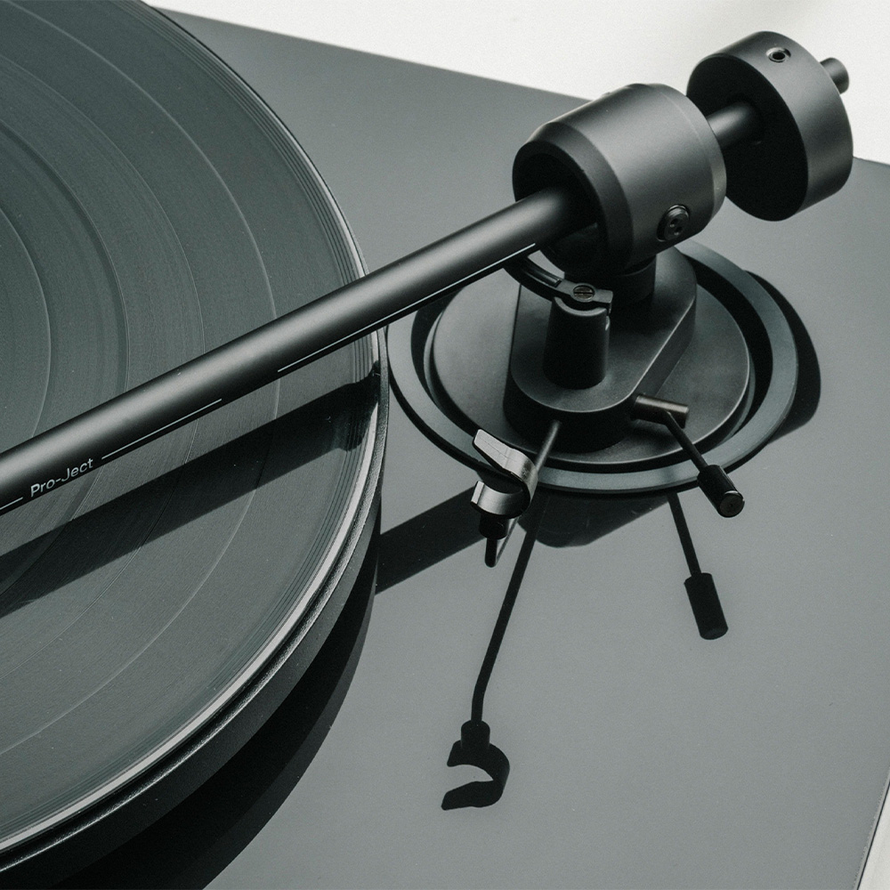 The tonearm of the E1.2 is crafted to deliver exceptional performance right out of the box, expertly adjusted at the factory, so you‘re ready to play right away. No tools, no guesswork - plug in and press play. At its core is a heavy mass gimbal design, offering solid tracking and great sound stability. The precision bearing system with zero play means smooth movement and clean sound. Pro-Ject have added a carbon-reinforced, super-stiff headshell to reduce vibrations, and the oversized diameter counterweight is placed closer to the moving parts, improving balance and tracking for better detail and bass response.