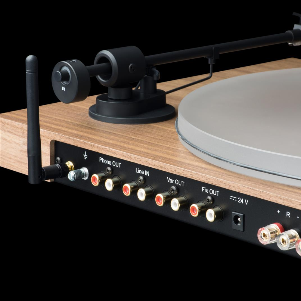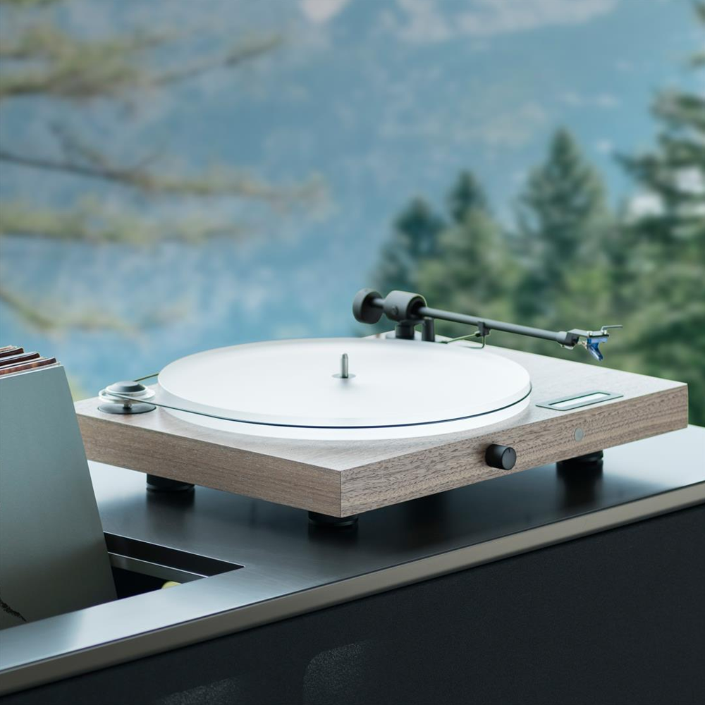 - 8.6” aluminium tonearm with sapphire bearings