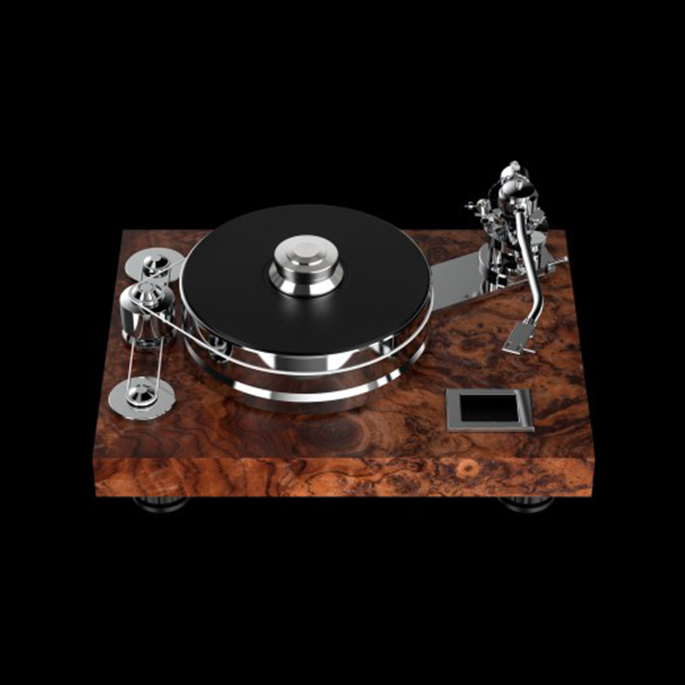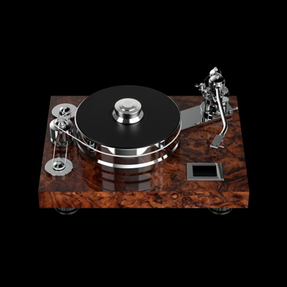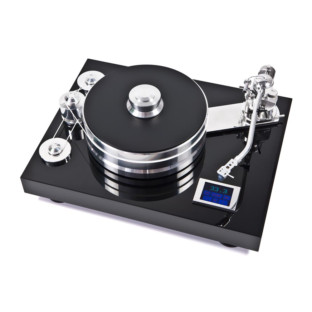 Signature 12 is a non-compromise high-end turntable that celebrates “20-years of Pro-Ject Audio Systems”. A highly sophisticated concept combines the mass-loaded principle with subchassis. Magnetic feet decouple the chassis from surface, Sorbothane-pillows and a magnetic-floating platter guarantee an absolute quiet running turntable. A “flywheel” belt drive system ensures vibration-free running. The new single-pivot tonearm is a genuine Pro-Ject design with SME headshell. With its wide range of adjustment possibilities and the choice of adequate counterweights, nearly all cartridges can be mounted.