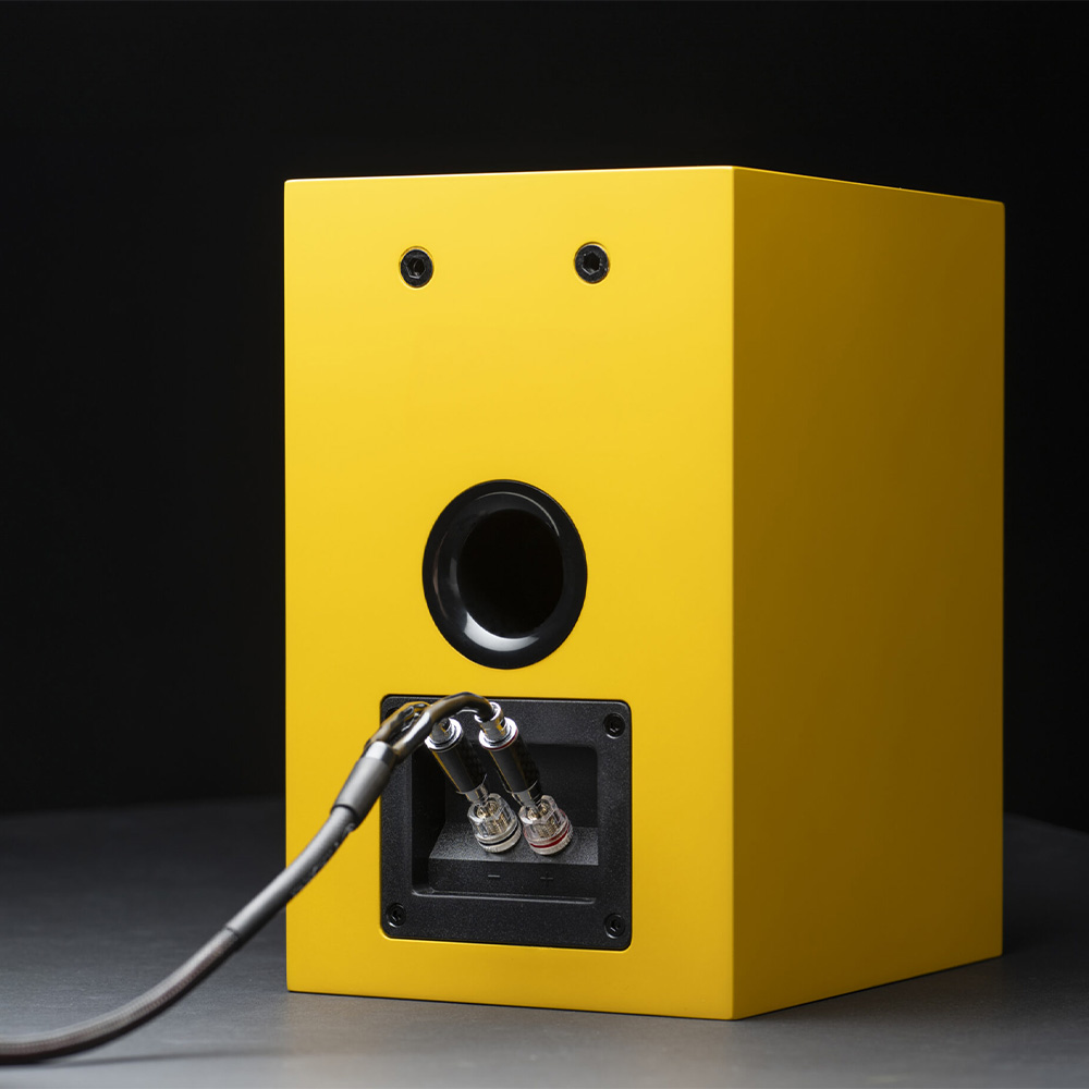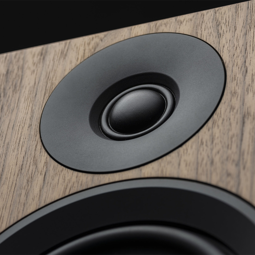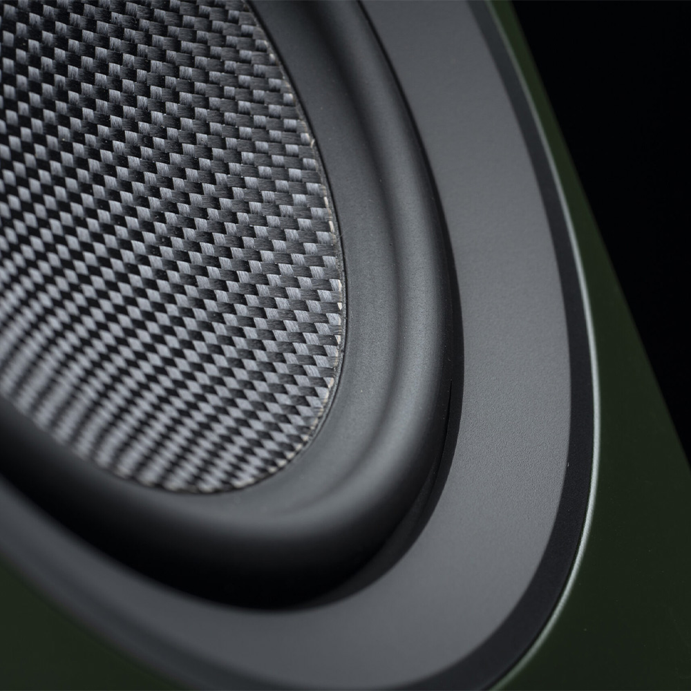 The Speaker Box 5 E Carbon features a 1“ silk dome tweeter, paired with a special 5“ fibre glass carbon composite woofer. Mounted into an ultra stiff non resonating MDF cabinet, these chassis deliver an audiophile music reproduction.