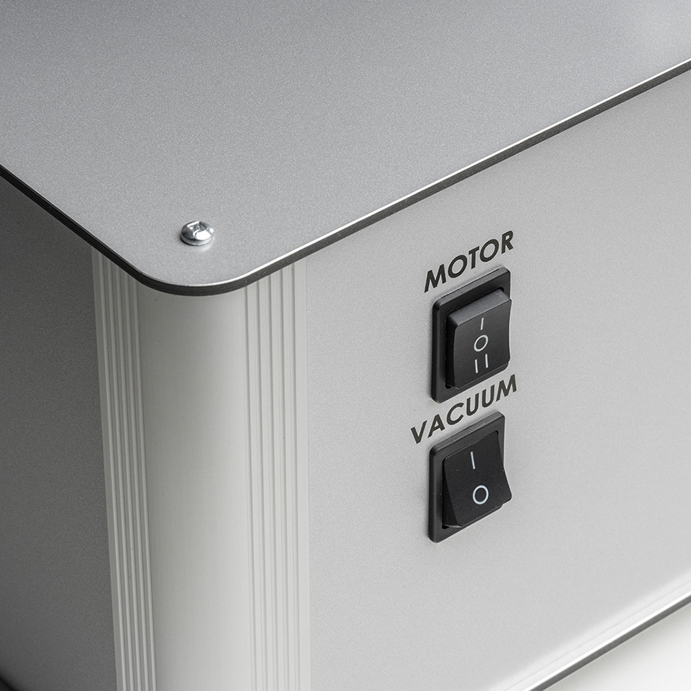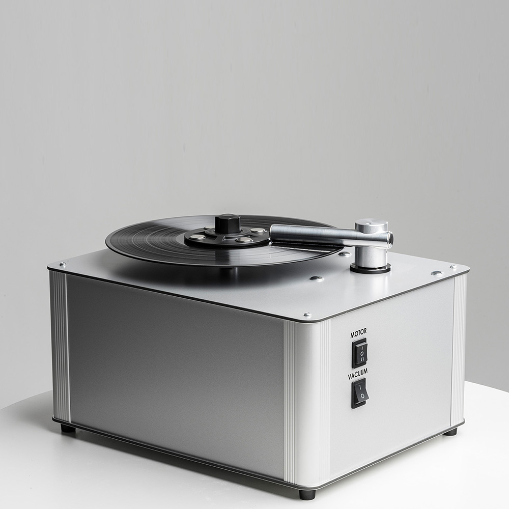 The magnetic clamp not only seales the record label from cleaning fluid to avoid damage on the label, it also speeds up the whole cleaning process. Place your record on the machine, put on the clamp and you are ready to go – no more tedious screwing of the clamp anymore. The robust easy to use metal arm is mechanically stable and focuses all suction power directly onto the record surface. Paired with new self-adhesive arm strip your records get cleaned perfectly. The large internal container (2,5 liters) collects used fluid and is effortlessly easy to empty. When using Wash it 2 cleaning solution, the fluid will also evaporate in the container, meaning the container will almost never need to be emptied even after cleaning thousands of records. It shows fill-up capacity and guarantees no spillage of used cleaning fluid. The new VC-S3 is made in Europe with high quality materials and an excellent build-quality. With many practical features and excellent mechanical operation, the VC-S3 effectively combines industrial design appeal with an easy solution to great sound from your vinyl records.