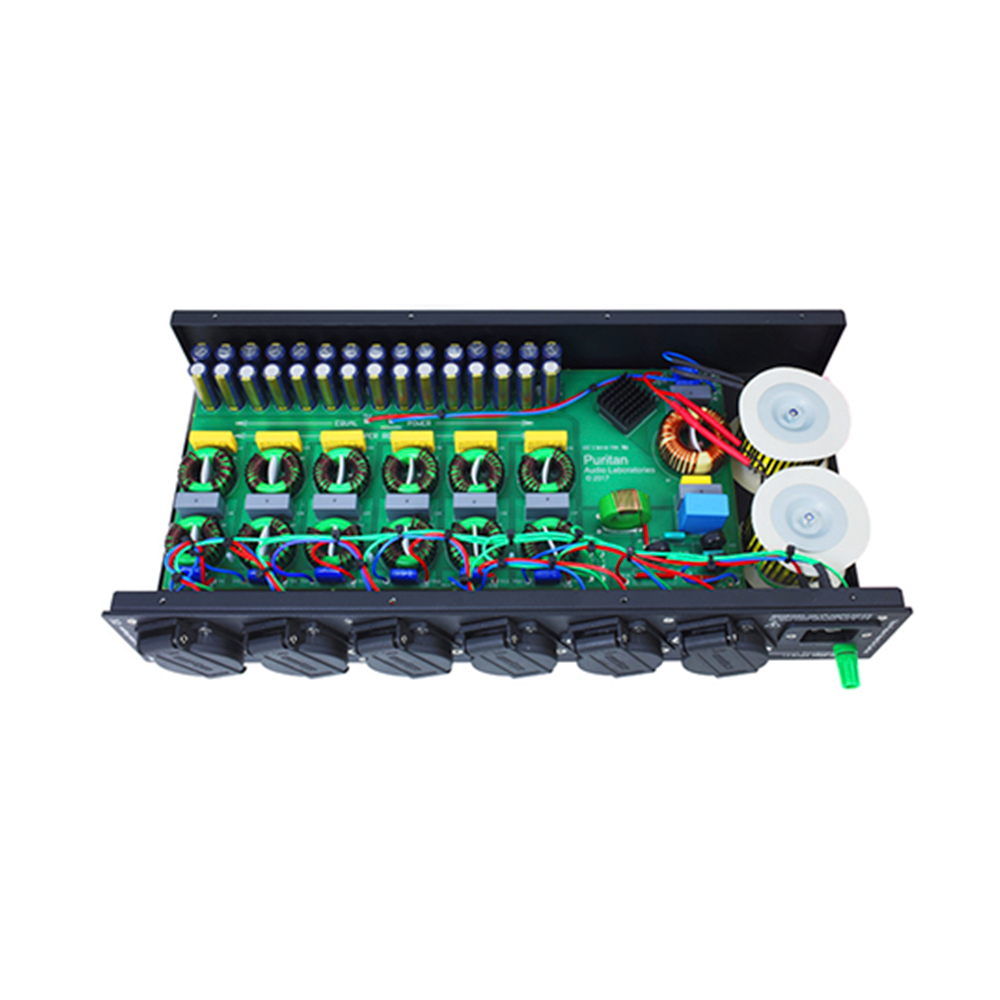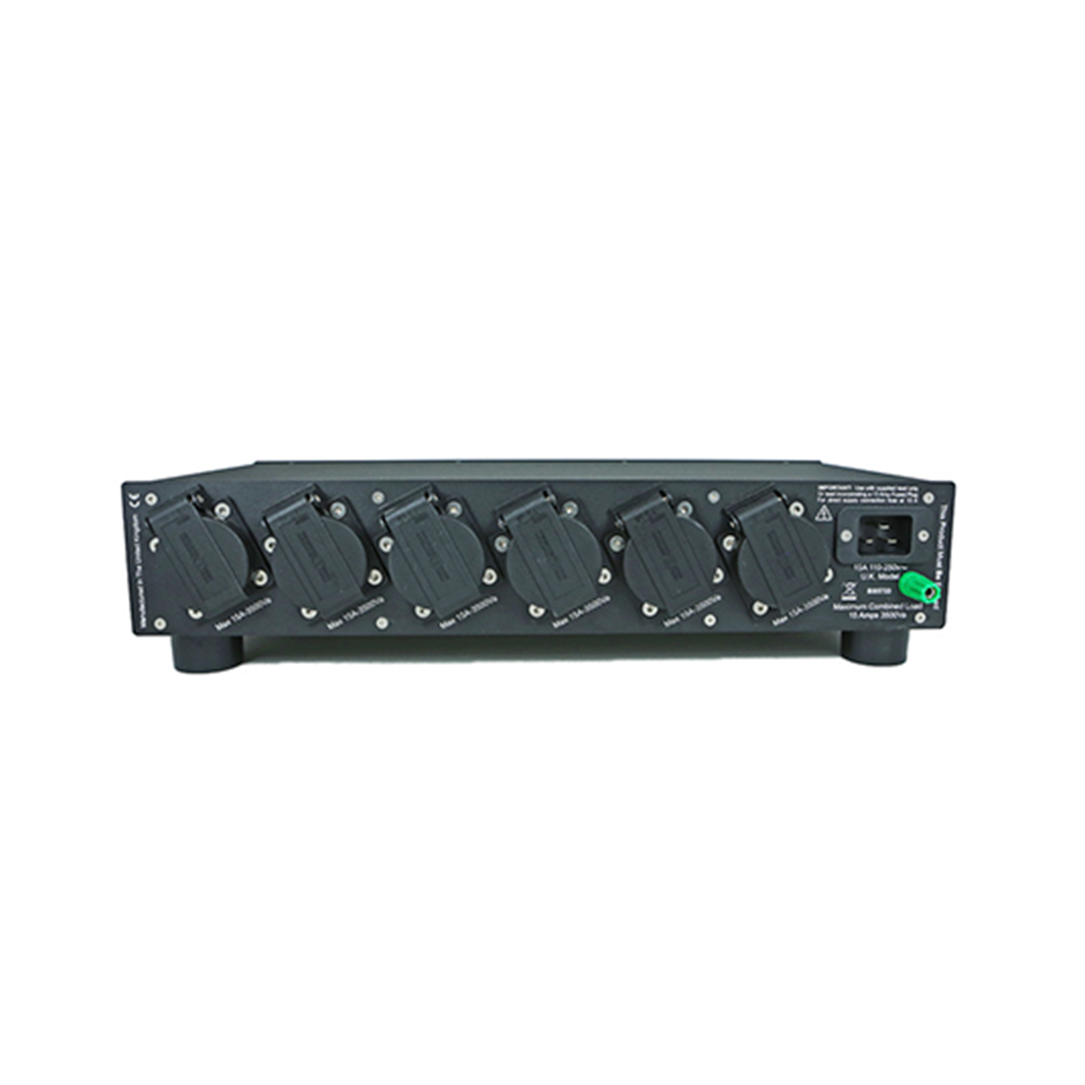 - six 15 Amp Outlets each with independent refilter stages for both common and differential mode disturbances avoiding cross contamination between connected equipment.