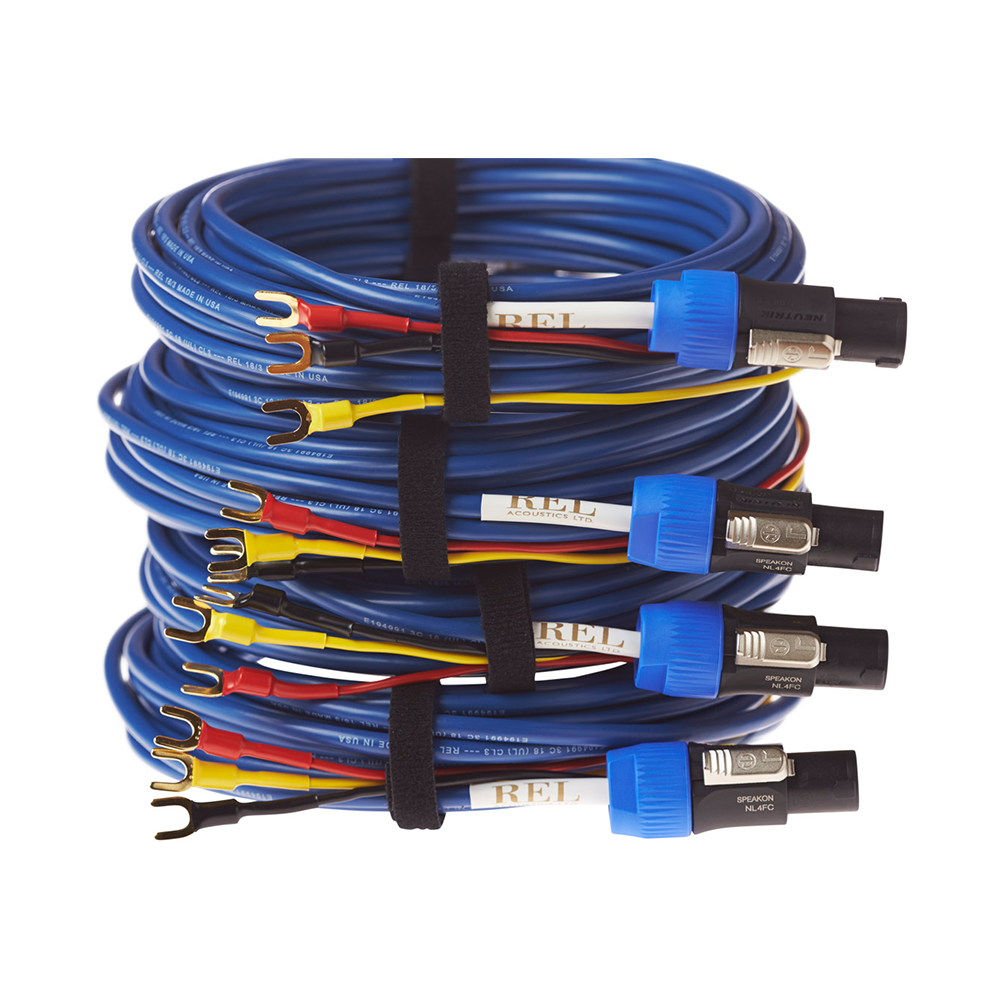 REL employ Swiss-made Neutrik SpeakOn connectors at the input to the REL sub bass system. In over 100,000 RELs in use the world over, this connector has proven itself reliable, neutral and a mechanically ideal connector for REL’s renowned High Level Input circuitry. BLUETM also features high quality spade lugs coated in gold to minimise oxidation. Should your amplifier require a bare wire connection, this is easily accommodated by manually re-terminating the individual red, black and yellow leads. The standard high-level hookup procedure is: attach the red wire to the amplifier’s right positive speaker output terminal; attach the yellow wire to the amplifier’s left positive speaker output terminal; attach the black wire to whichever of the amplifier’s ground output terminals is convenient; plug the Speakon connector into the Sub-Bass system’s high-level input.