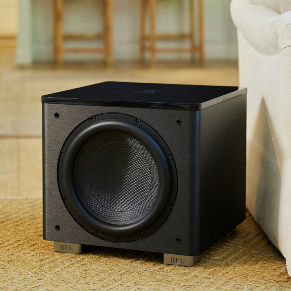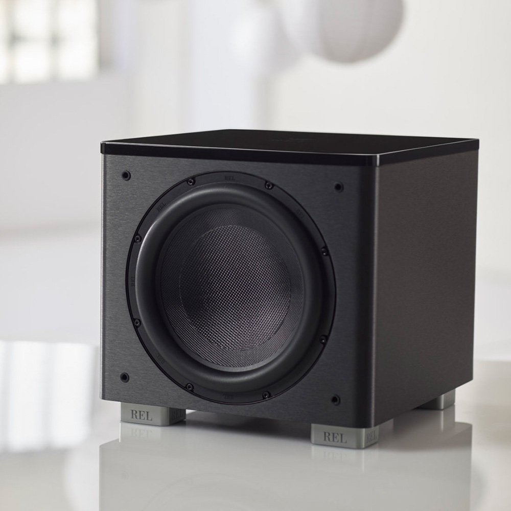 Avoiding electronic gimmickry in favor of properly balanced priorities; cabinets that are right-sized, solidly braced and beautifully finished. A sparkling new amp design that effortlessly delivers 500W into an all-new CarbonGlas™ 12” (300mm) driver. The sexy new black lacquer top plate has a subtle REL logo floating on top, while the expensively wrought black line-grained composite for the cabinet looks the business.