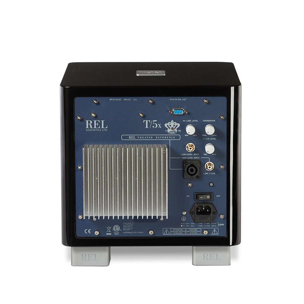 T/5x builds on its predecessor’s reliable, expensive 125 W Class A/B amplifiers. Internally, key items significant to upgrading transparency and speed have been upgraded at no cost to REL’s legendary reliability. Separate inputs for High Level Inputs, Low Level Input (necessary for the increasing number of powered active speakers emerging on the market) allow for a natural, perfect transition from speaker to subwoofer. And in theater a separate, dedicated .1/LFE Input for Theatre performance permits automatic transition between music in high end 2-channel applications and home theater without needing to change a single setting.