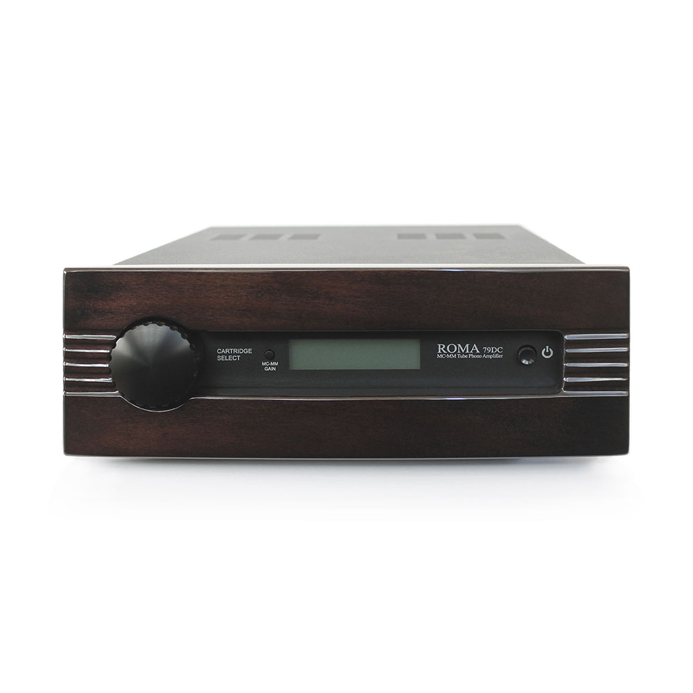 The Roma79DC has easily selectable capacitors (MM) and impedances (MC) for cartridges by a front mounted knob selector which is also shown on the front LCD display.