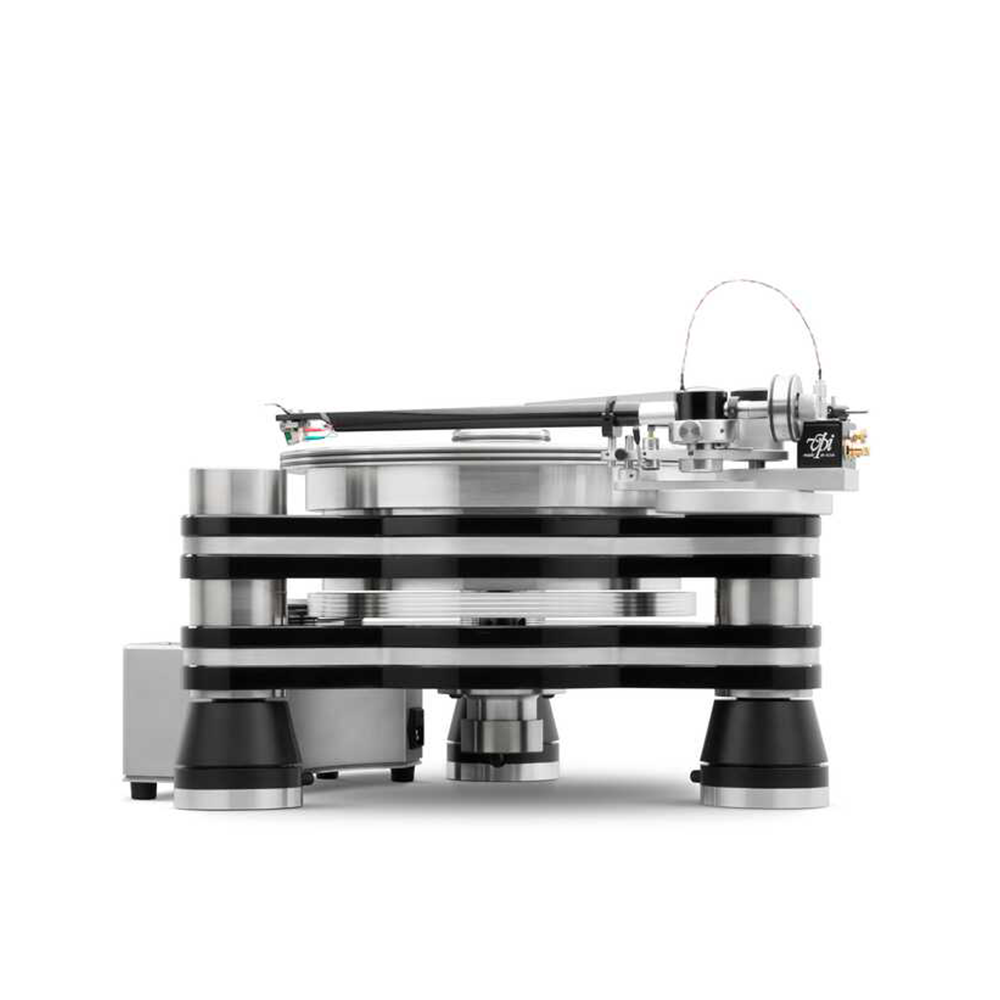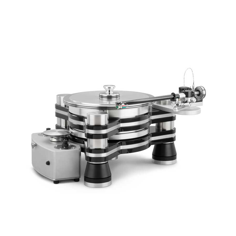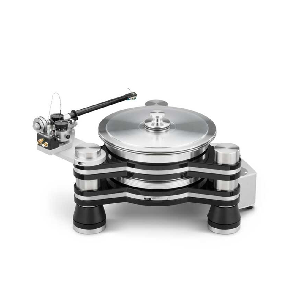 Titan is based around a 44-pound slave platter driving the main bearing, a system that imparts no background noise. Its built-in air-suspension, leveling feet isolate a measured 98% of all loudspeaker feedback and vibration. The Fat Boy tonearm delivers improved sound staging and an indescribably controlled bottom end.