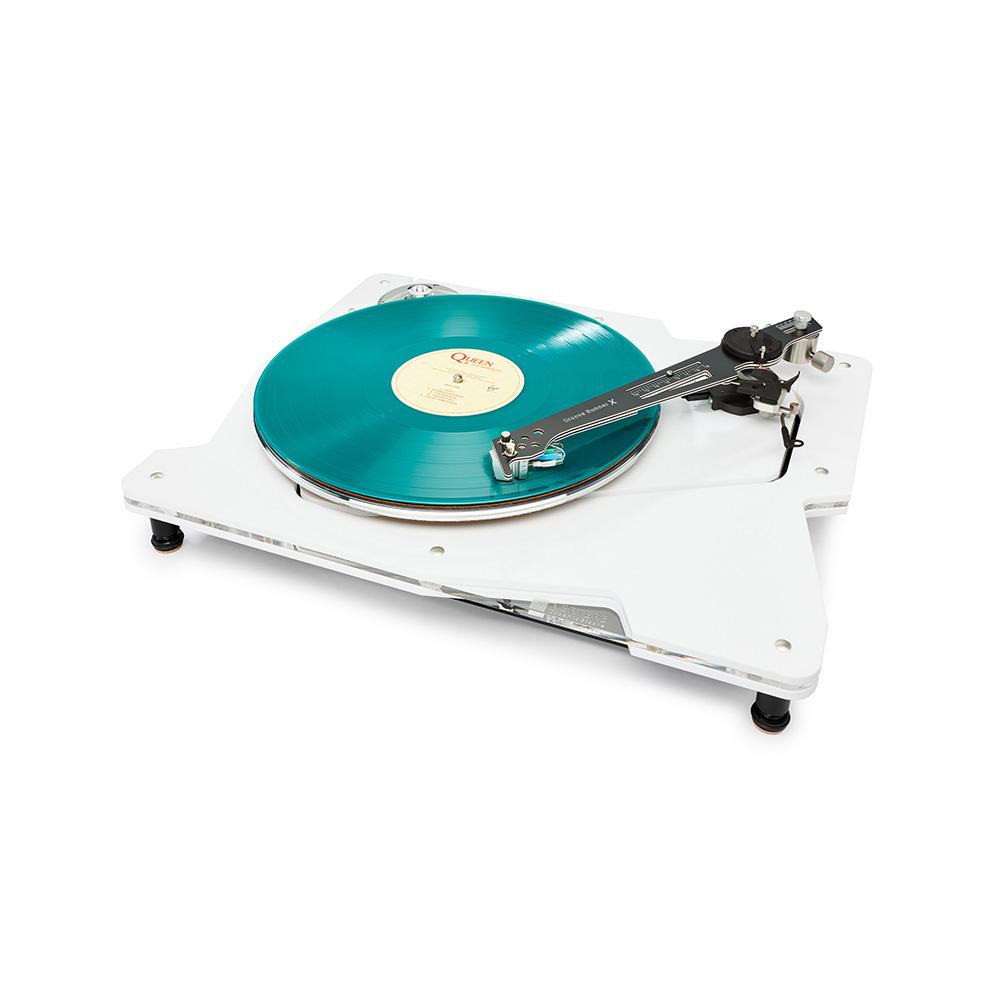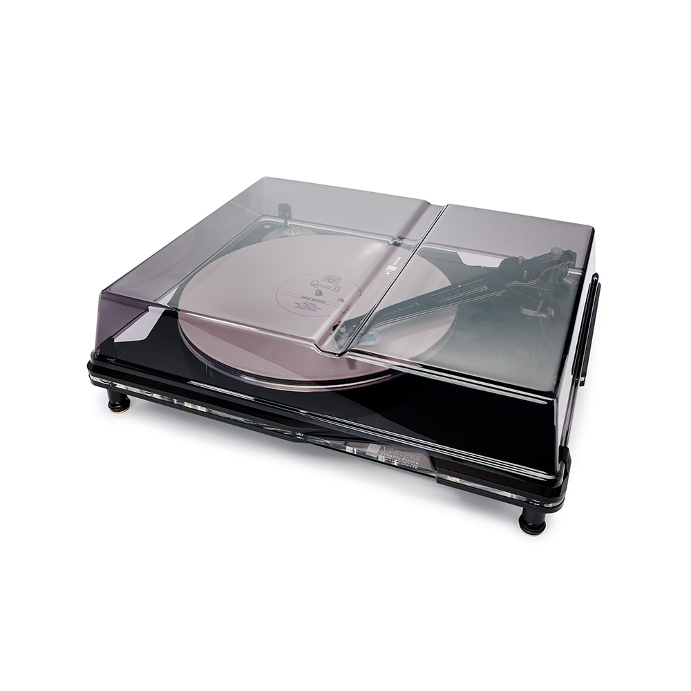 Completing the design, the DG X features a sleek, formed acrylic dust cover that clips neatly onto integrated hinges, creating a modern, streamlined profile that complements the elegance of the record player’s overall look.