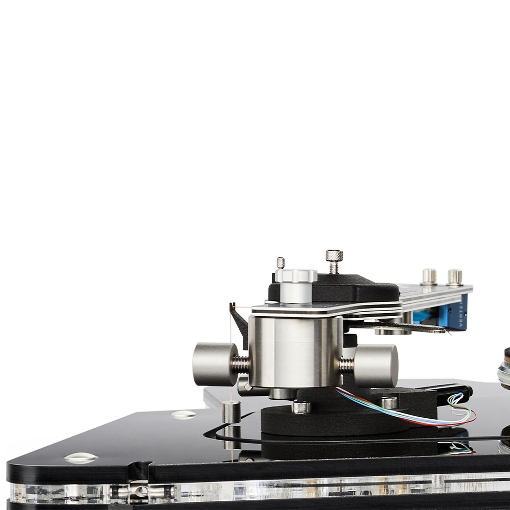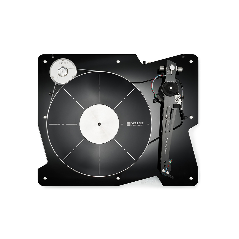 The DG X arm, Groove Runner X, is uniquely Vertere and differs from conventional thinking in its use of a flat profile in place of the usual tube. Conventional arms use tubes for stiffness, but these can introduce all kinds of problems with high Q resonances and thus the need for extra damping – complicated and sometimes undesirable. DG X’s bonded double five-layer, non-resonant tonearm beam avoids these problems. In addition, in place of its predecessor’s exible PCB, Vertere Pulse internal wiring is used to ‘carry’ the signal from the cartridge. Completing the arm are a stainless steel counterweight with azimuth adjustment screw and a fine adjustment tracking weight, to provide a total solution that's as simple and elegant as it is innovative. With these two weights the arm effective mass can be set to match perfectly the cartridge used for optimum performance.