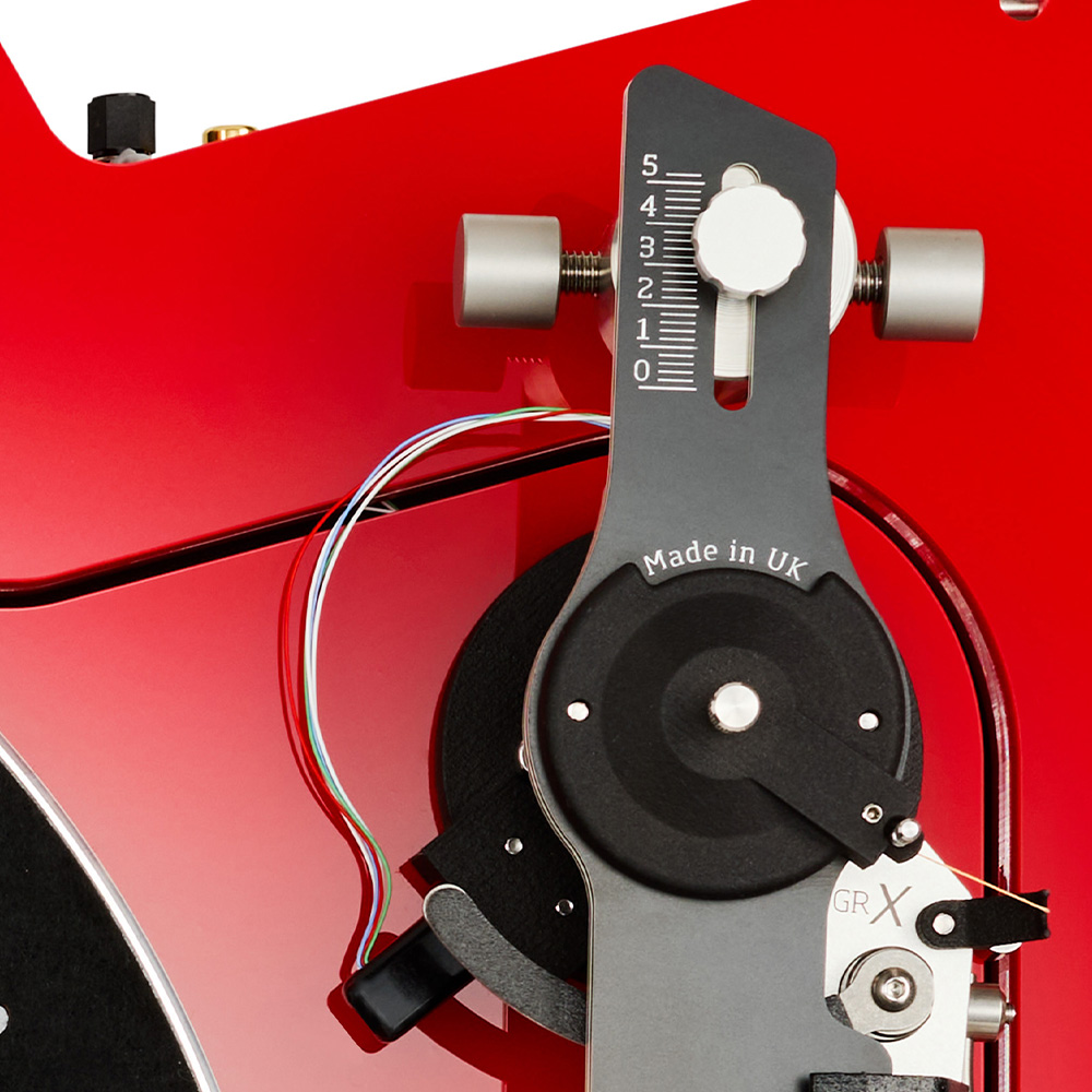 The adjustable bearing point on the GR X provides simple and precise setting of the VTA (Vertical Tracking Angle) for optimum performance. GR X benets from having a detachable internal wiring that allows the entire arm beam to be removed from the tonearm bearing pillar. This ensures absolute safety when the record player is transported and yet keeps the setup of the arm/