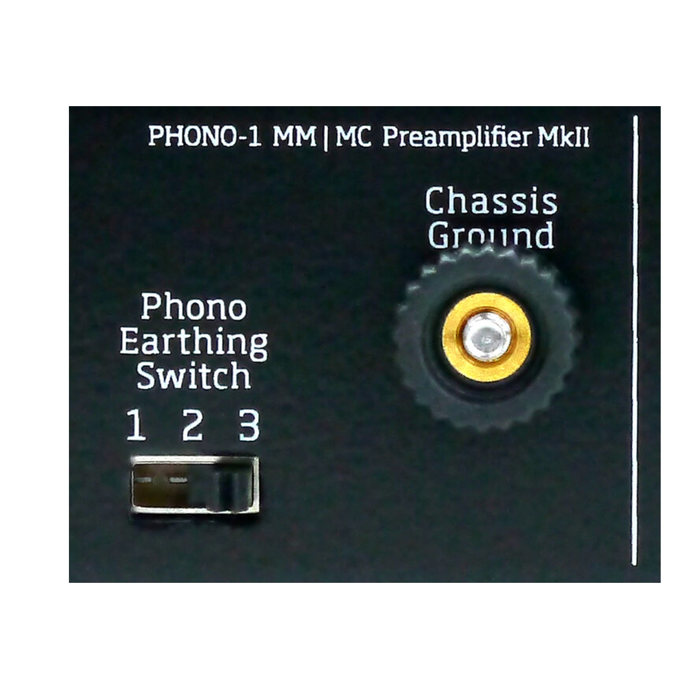 A 3-way switch provided at the back of PHONO-1 gives the options of ‘Hard Ground’, ‘Ground Lift’ or ‘Soft Ground’ connection of the preamplifier and the chassis, to minimise any hum that may be introduced between the PHONO-1 and the main amplifier.