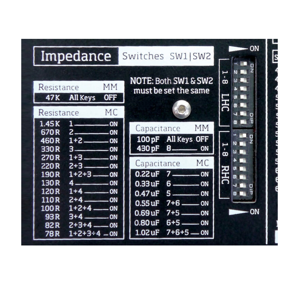 PHONO-1 MkII L has two switch banks, now easily accessible from the underside of the unit, that allow 15 resistance and 9 capacitance settings for left and right channels.