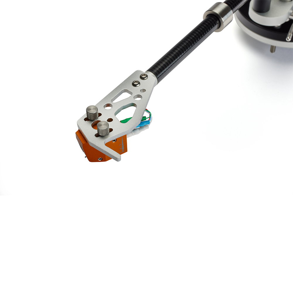 The head-shell is made from aluminium alloy and connected to the arm tube via structurally bonded alloy end insert. Naturally non-resonant and higher strength to weight ratio of this configuration provides the optimum cartridge platform.