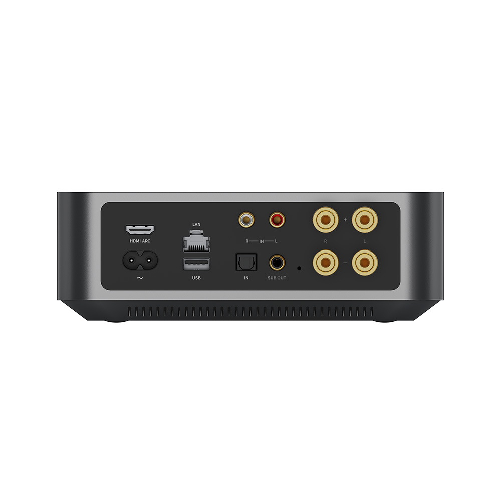 Elevate your entertainment experience effortlessly with the WiiM Amp's HDMI-ARC port. Plug in your TV and immerse yourself in rich stereo sound for shows, movies, and video games. The subwoofer output with automatic bass management further elevates sound quality for that real home cinema experience.