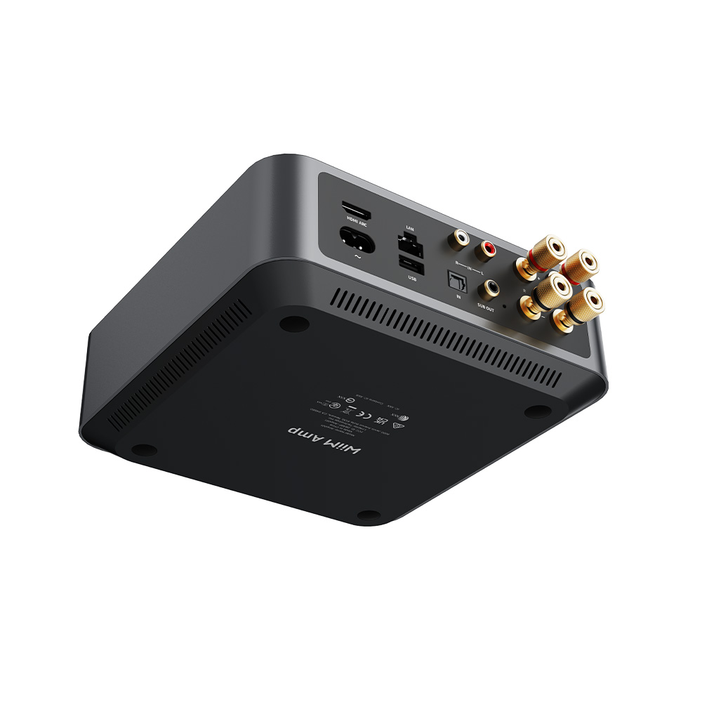 The WiiM Amp will automatically pop up in your WiiM Home app. The in-app guide will thereafter aid you in the rest of the setup, and you will be able to start streaming music in less than 2 minutes. Connection to your speakers is via high-quality output terminals, and you can expand your system further with the additional subwoofer output.