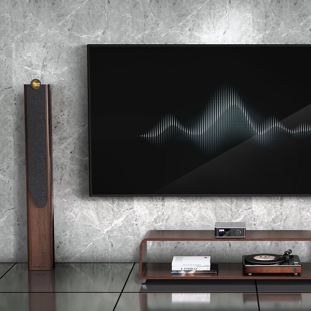 Stay connected with Wi-Fi 6 tri-band and Bluetooth 5.3 for ultra-low latency streaming. The vivid 3.5″ glass touchscreen offers intuitive control with album art, VU meters, and instant input switching. Built-in RoomFit™ technology automatically tunes your setup to match your room’s acoustics, delivering optimal sound tailored to your environment.