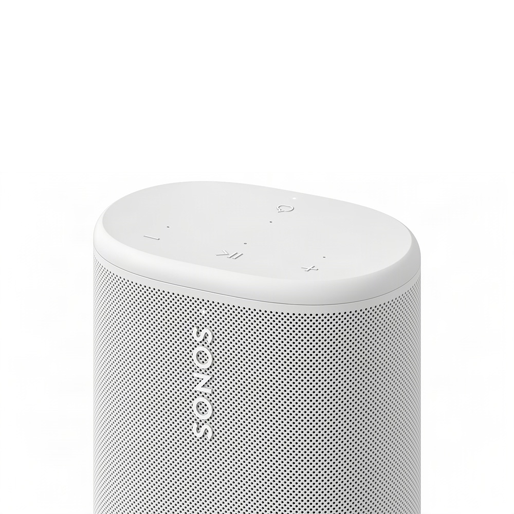 - Controls: Use the button controls to play, pause, skip, replay, adjust the volume, mute your voice assistant, and group or ungroup Sonos products.