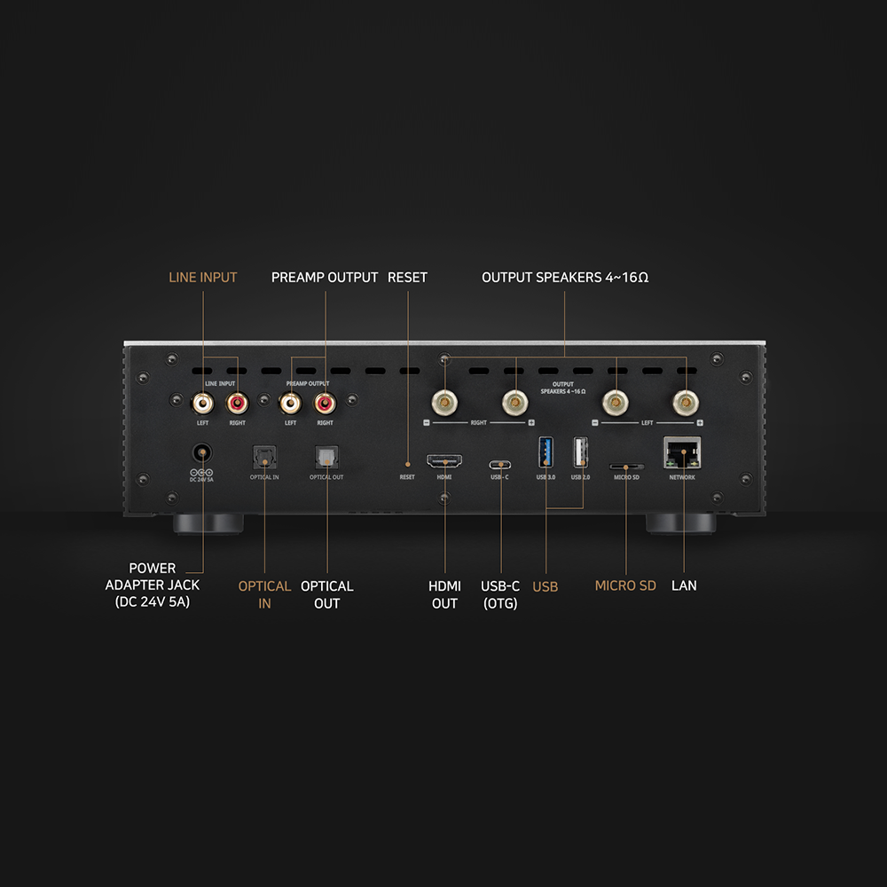 - native DSD32bit-11.2MHz provide full and dynamic sound through Reference 32bit High Performance DAC.
